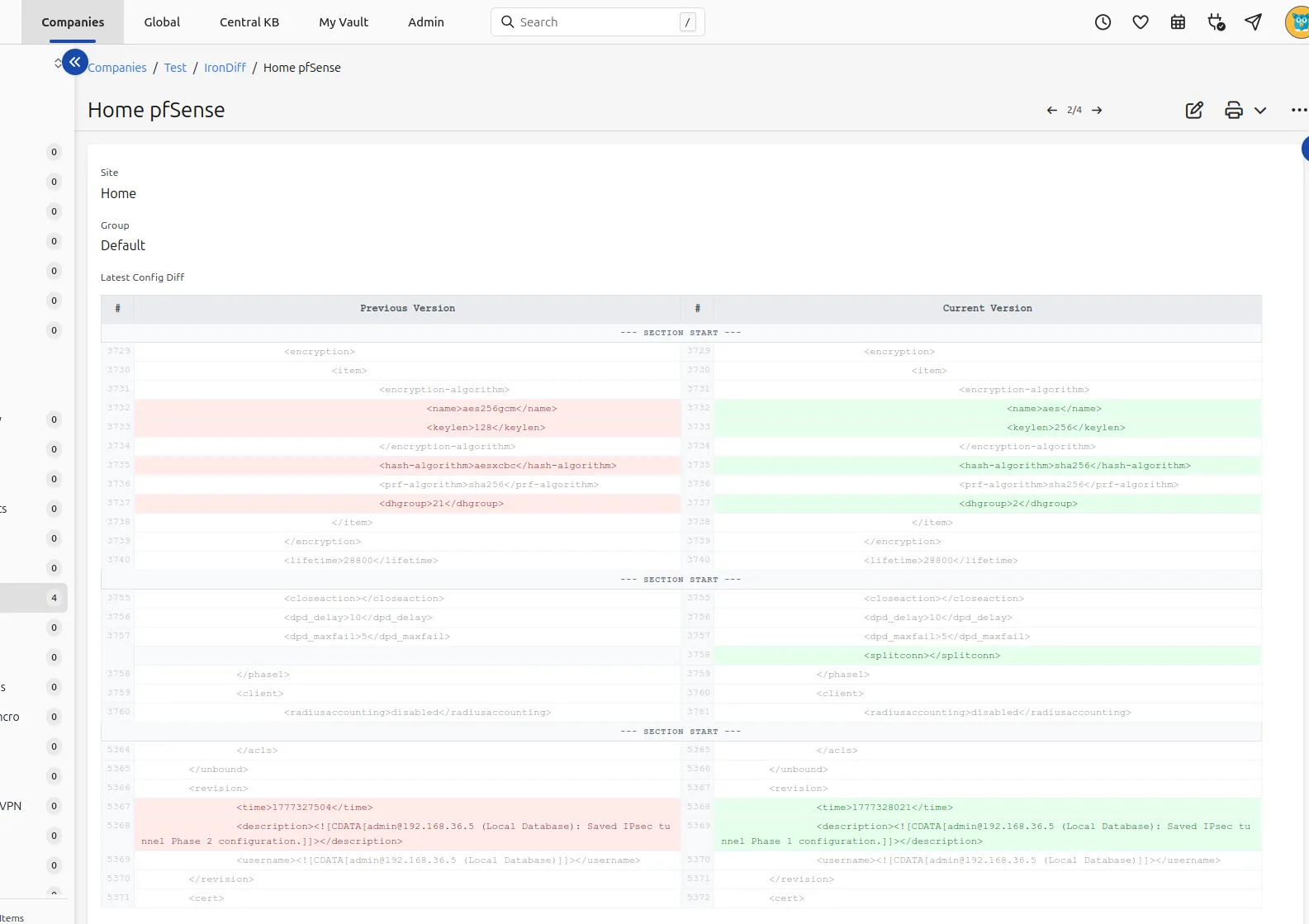 Intelligent diffing highlights exactly what changed in your configuration.